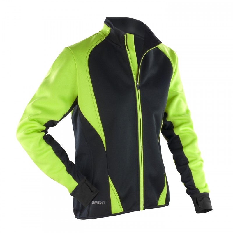 Bodyfit Leggings Femmes SPIRO 200 g/m2. 80% polyamide (nylon), 20% élasthanne. Respirant. Taille élastiquée avec cordon. Coutures plates. Panneaux galbants avec surpiqûre contrastée. Poche à clés dans le haut. Logo imprimé ultra réfléchissant sur le haut de la cuisse gauche et la cheville droite. Convient à la broderie et au transfert.