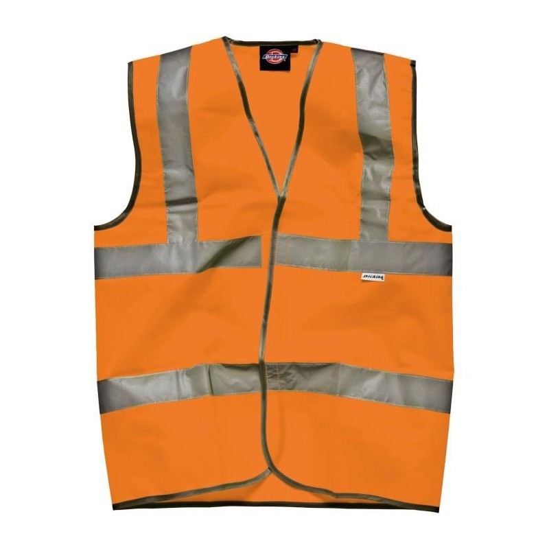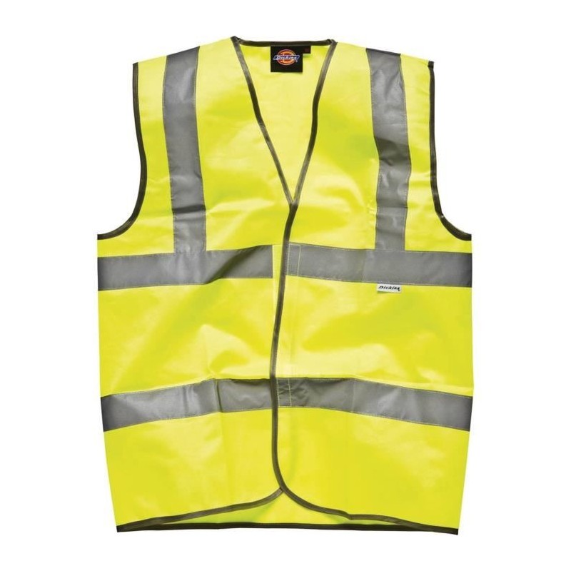 Gilet sécurité route enfant DICKIES 100% polyester tricoté. Deux bandes haute visibilité de 5cm sur le corps et une sur chaque épaule. Fermeture velcro®.